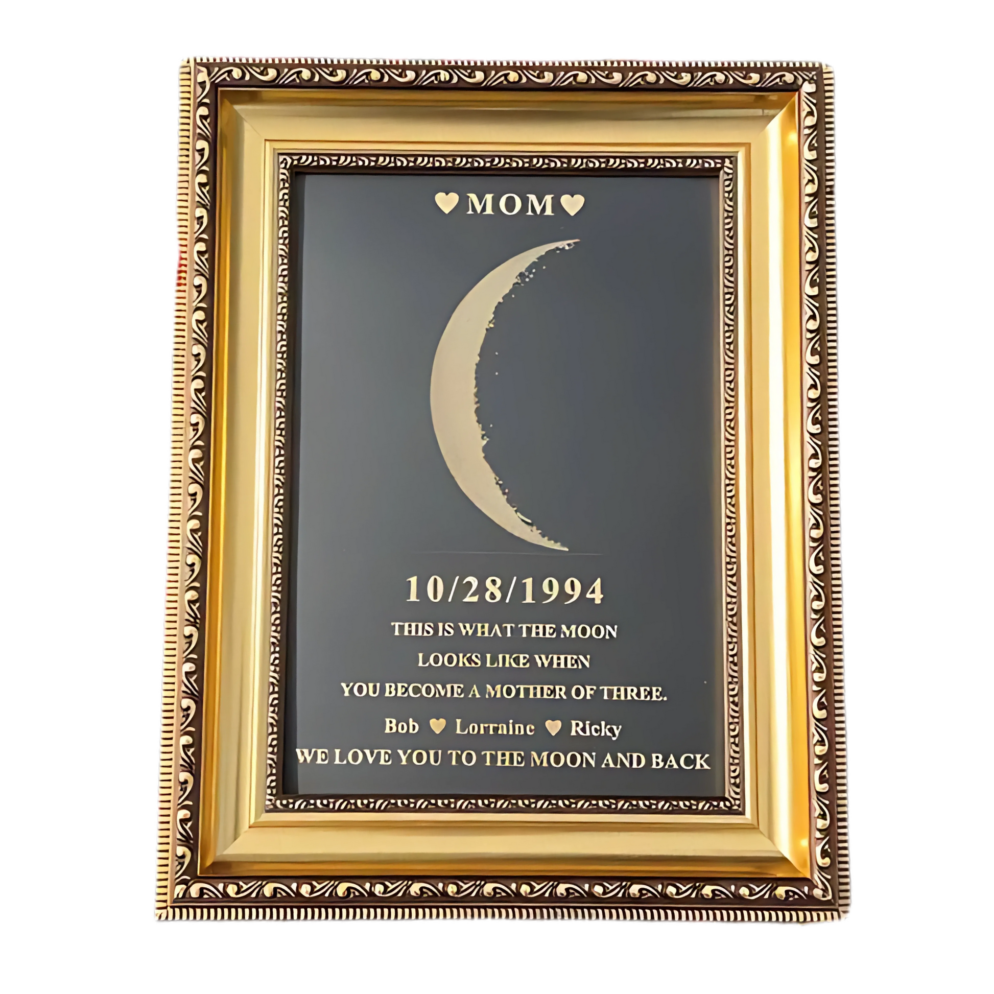 כן זה אמיתי, עיצוב מדויק של הירח כפי שנראה בלילה שתבחרו יום הולדת, יום נישואין, או כל תאריך משמעותי אחר.
